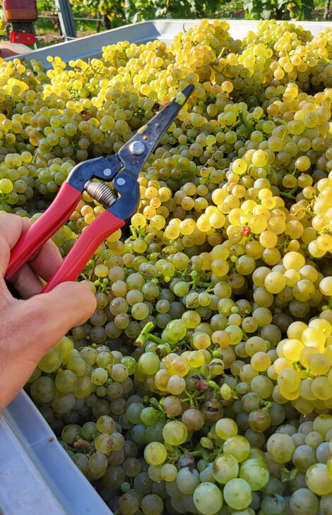 Die Handlese ist in vollem Gange! Wir sind begeistert über die diesjährigen Qualitäten. Brillante Frucht, intensive Aromatik und 100% gesundes Lesegut prägen die 2025er Ernte. Gemäß unseres Leitspruchs "Besondere Weine entstehen aus einer Vielzahl optimaler Kleinigkeiten" ist jede einzelne Beere entscheidend.
